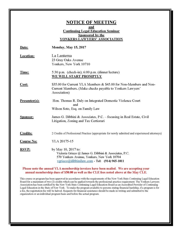 “[To] promote and maintain the Practice of Law as a profession, that is, as a learned art pursued in the spirit of a public service – in the spirit of a service of furthering the administration of justice through and according to law.” - For more information on the Yonkers Lawyers’ Association click here.